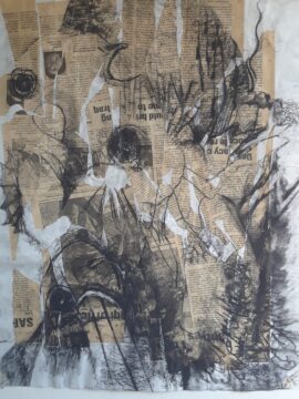 2000. Charcoal, torn newspaper. 18″ x 24″