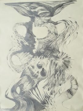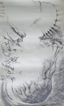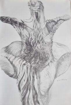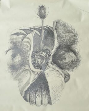 In my search for a universal feminine image, I wanted to include aspects of landscape, myth, and our (mis)treatment of the world. In this period I experimented with subtractive drawing (a texture gained by erasing a drawing). Many of the earliest drawings were simply titled “Magdalene (# of the series).” The “number” in the title remained for the first 25 or so.