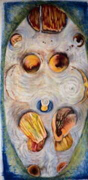 10/1988. Water-sol wax crayon. 85″ x 72″ (2 panels)