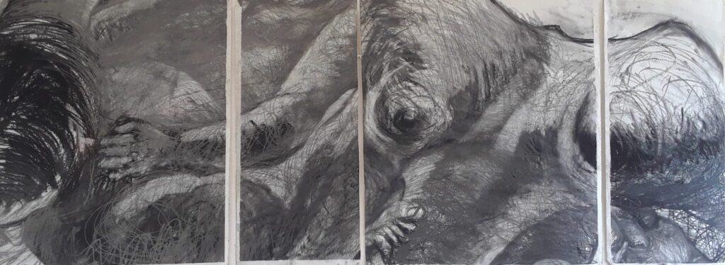 2000-2001. Charcoal, Pencil, Conte Crayon. 48″ x 48″ (4 panels)