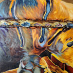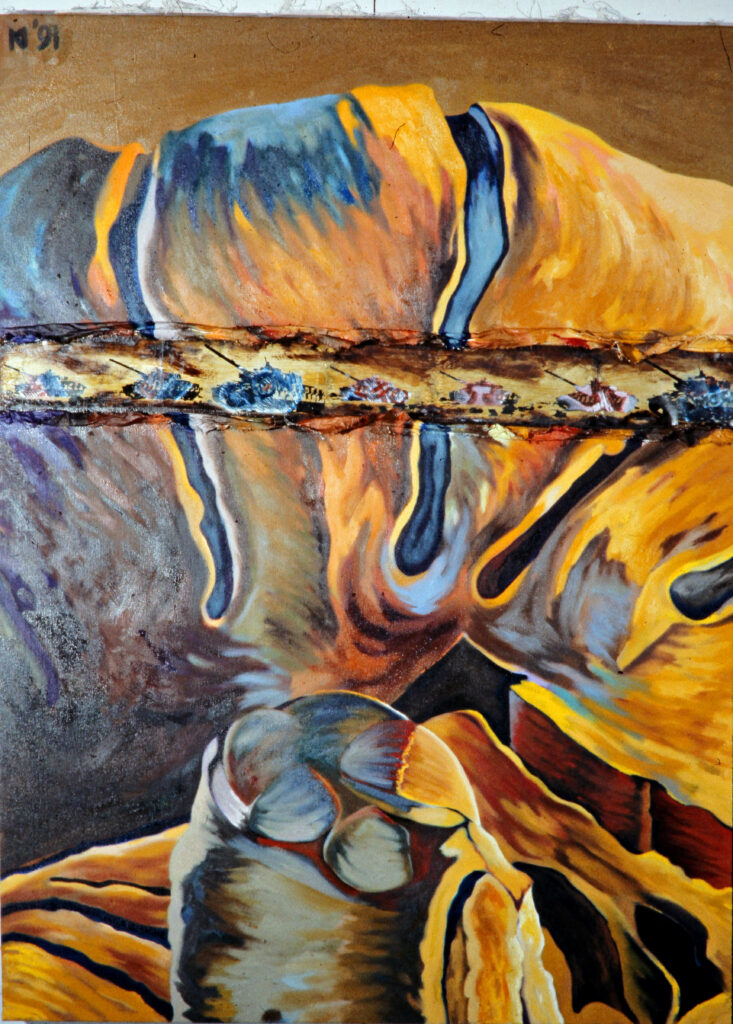 1991. Mixed Media (oil over collage; canvas strips). 60″ x 48″